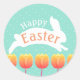 Pegatina Redonda Felices Tulipanes de Pascua y Conejo