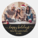 Elegante y moderno "Felices Fiestas" Caligrafía con guión negro y dorado Navidades de fotografía familia vacaciones Gran Pegatina redondo. Excelente para Sellos para sobres de accesorios de correo y Pegatinas de regalo.