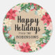 Pegatina Redonda Felices vacaciones Papel de Poinsettia Kraft