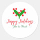 Pegatina Redonda Felices vacaciones verde pareja roja nombre hoja v