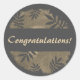 diseño marrón y gris con hojas de follaje y la palabra: "¡Felicitaciones!"