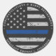 Añade el toque final a tus invitaciones a la fiesta de retiro o graduación de la policía y felicitaciones de la policía, delgados pegatinas de la línea azul y suministros de fiestas. Diseño de la bandera estadounidense en los colores de la bandera de la policía, diseño gastado vintage en cuero. Esta colección de jubilaciones de oficiales de policía será la favorita. Vea nuestra delgada colección de líneas azules para igualar invitaciones de retiro de la policía, invitaciones a graduarse de las fuerzas del orden, regalos de la policía, favores de partido y suministros. DERECHOS RESERVADOS © 2020 Judy Burrows, Black Dog Art - Todos los derechos reservados. La policía de retiro de la delgada línea azul felicita al Pegatina redondo clásico