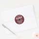 Añada un toque elegante y personalizado a las invitaciones a la universidad o a la graduación de la escuela secundaria, invitaciones y favores de fiesta con elegantes pegatinas personalizados y blancos redondos. Toda la redacción de esta plantilla es sencilla para el personalizar de sellos para sobres o etiquetas de agradecimiento. El diseño moderno presenta un fondo rojo burdeos oscuro cepillado, un gorro de mesa de mortero blanco y negro, una caligrafía de escritura elegante y una tipografía vintage clásica. Estos pegatinas le agregan un toque final único a una celebración de graduación. ¡Felicitaciones al graduado!