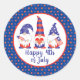 Pegatina Redonda Feliz 4 de julio de gnomos azul rojo blanco