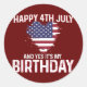 Pegatina Redonda Feliz 4 de julio y sí es mi bandera de cumpleaños