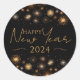 Un espléndido Partido de Nochevieja favorece a los pegatinas. Este glamoroso diseño de año nuevo cuenta con fuegos artificiales en un elegante fondo negro. Perfecto para tu fiesta de Nochevieja o celebración de Año Nuevo.