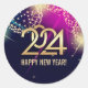Pegatina Redonda Feliz Año Nuevo 2024. Fuegos artificiales