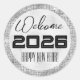 Pegatina Redonda Feliz Año Nuevo 2026 Diamantes negros y plateados