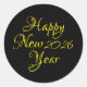 Pegatina Redonda Feliz Año Nuevo 2026 Guión negro y amarillo