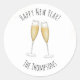 Pegatina Redonda Feliz Año Nuevo Acuarela Champán Divertido Lindo