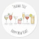 Pegatina Redonda Feliz Año Nuevo Acuarela Cócteles Gracias