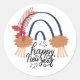 Pegatina Redonda Feliz Año Nuevo Boho Arcoiris
