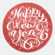 Pegatina Redonda Feliz Año Nuevo Caligrafía Moderna Brillo Rojo