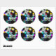 Pegatinas con mi diseño de un delfín con un gorra fiesta saltando del agua para ver la exhibición de fuegos artificiales de Nochevieja. El texto dice "¡Feliz Año Nuevo!"