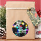 Pegatina Redonda Feliz año nuevo delfín y fuegos artificiales