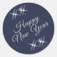 Pegatina Redonda Feliz Año Nuevo Elegante Sparkles Navy Blue