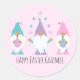 Pegatina Redonda Feliz Año Pascua Gnomie jadeando huevos de Pascua