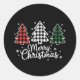 Pegatina Redonda Feliz Árbol de Navidad Búfalo Plantado Verde Blanc