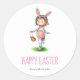 Pegatina Redonda Feliz Chica de Pascua en vacaciones de niños disfr