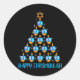 Pegatina Redonda Feliz Chrismukkah Dreidel Árbol de Navidad Hanukka