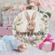 Pegatina Redonda Feliz Conejo de Pascua