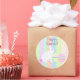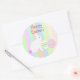 Pegatina Redonda Feliz Conejo de Pascua y huevos a rayas