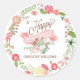 Corona floral de color rosa pálido pastel con un diseño floral feliz de cumpleaños sobre fondo blanco. Nombre de las personas de personalizable/cumpleaños.