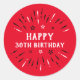 Pegatina Redonda Feliz cumpleaños 30 Fuegos artificiales Rojo Negro