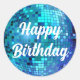 Pegatina Redonda feliz cumpleaños 3d bola de disco azul