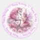 Pegatina Redonda Feliz cumpleaños a unicornio