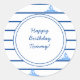 Pegatina Redonda Feliz cumpleaños, barco de vela azul y franjas