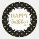 Pegatina Redonda Feliz cumpleaños Black White Gold Dots