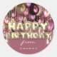 Pegatina Redonda Feliz cumpleaños Borgoña gotea globos de oro rosad