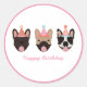 Pegatina Redonda Feliz cumpleaños Bulldog francés Fiestas Gorras ro