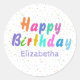 Pegatina Redonda Feliz cumpleaños, coloridas estrellas y personaliz