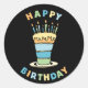 Pegatina Redonda Feliz cumpleaños con diseño de pasteles