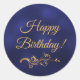 Pegatina Redonda Feliz cumpleaños con una decoración elegante en az