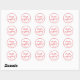 Feliz cumpleaños, personalizado rojo nombre del guión favorece a los clásicos Pegatinas redondos. nombres y fecha rodeados por una delicada corona de corazones lindos. en rojo y blanco