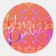 Pegatina Redonda "¡Feliz cumpleaños!"Corazones Rosas escritas a man