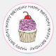 Pegatina Redonda Feliz Cumpleaños Cupcake Rosa y Vainilla