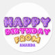 Pegatina Redonda Feliz cumpleaños de nombre globos dorados blancos