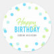 Pegatina Redonda Feliz cumpleaños del confeti verde azul de la