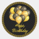 Pegatina Redonda Feliz cumpleaños, elegante negro y oro,