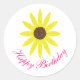 Pegatina Redonda Feliz cumpleaños Flor de girasol floral amarillo r
