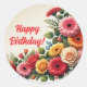 Feliz Cumpleaños Floral Classic Round Pegatina.