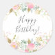 Pegatina Redonda Feliz cumpleaños Floral rosa