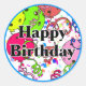 Pegatina Redonda Feliz cumpleaños, globos de bolas de póleo Confett