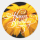 Pegatina Redonda Feliz cumpleaños, margarita amarilla