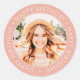 Pegatina Redonda Feliz cumpleaños, moderna y simple foto Personaliz