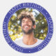 Pegatina Redonda Feliz cumpleaños moderno simple elegante foto azul